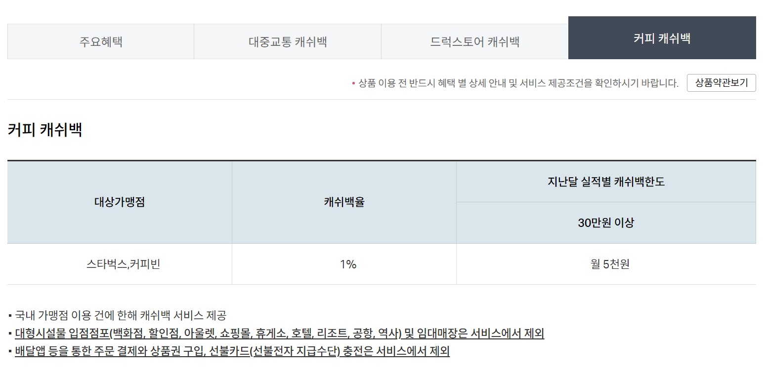- 국내 가맹점 이용 건에 한해 캐시백 서비스 제공