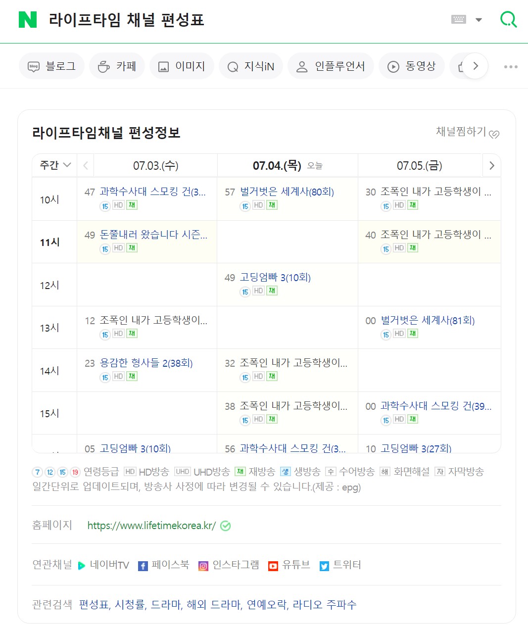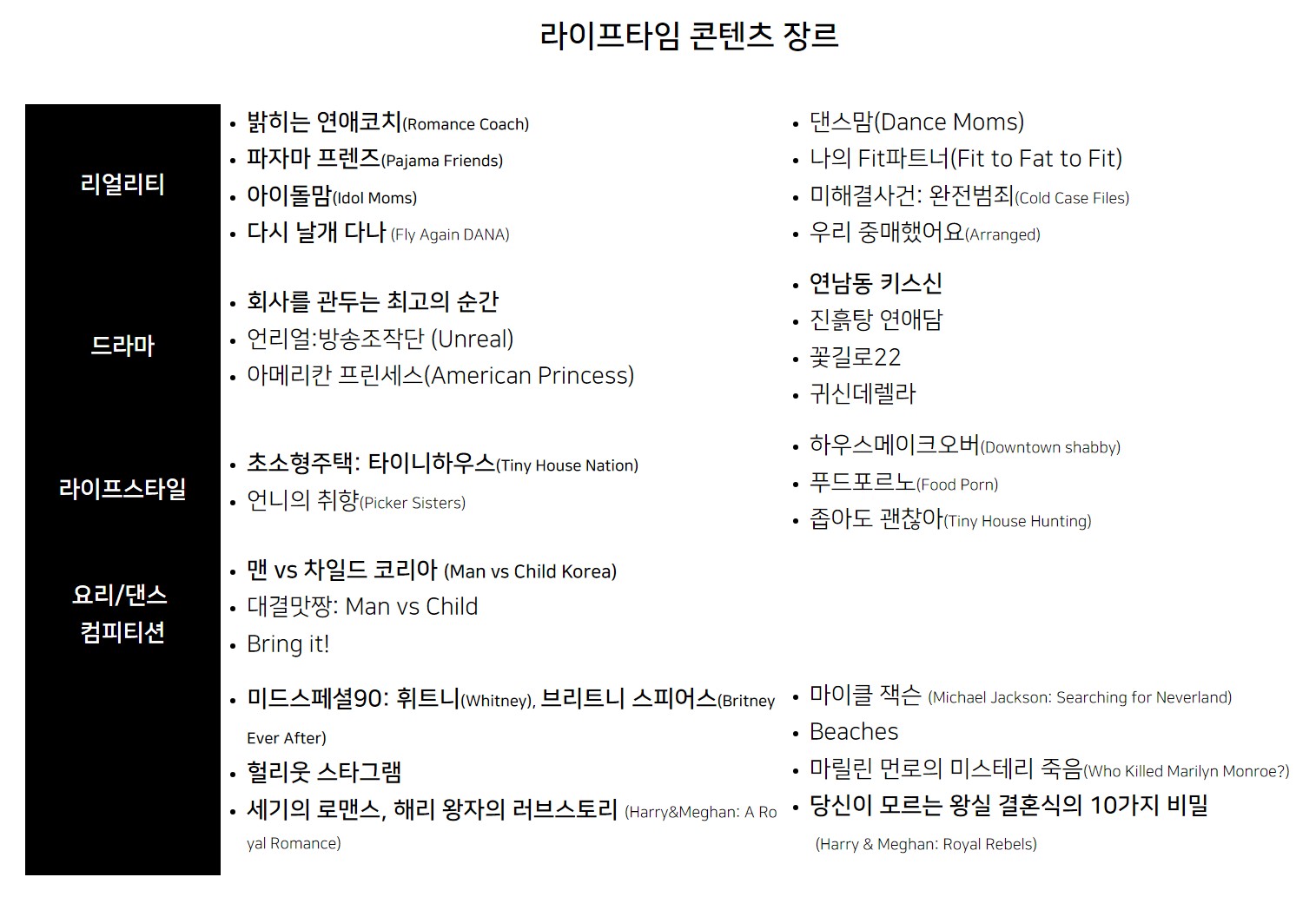 라이프타임 채널의 주요 프로그램