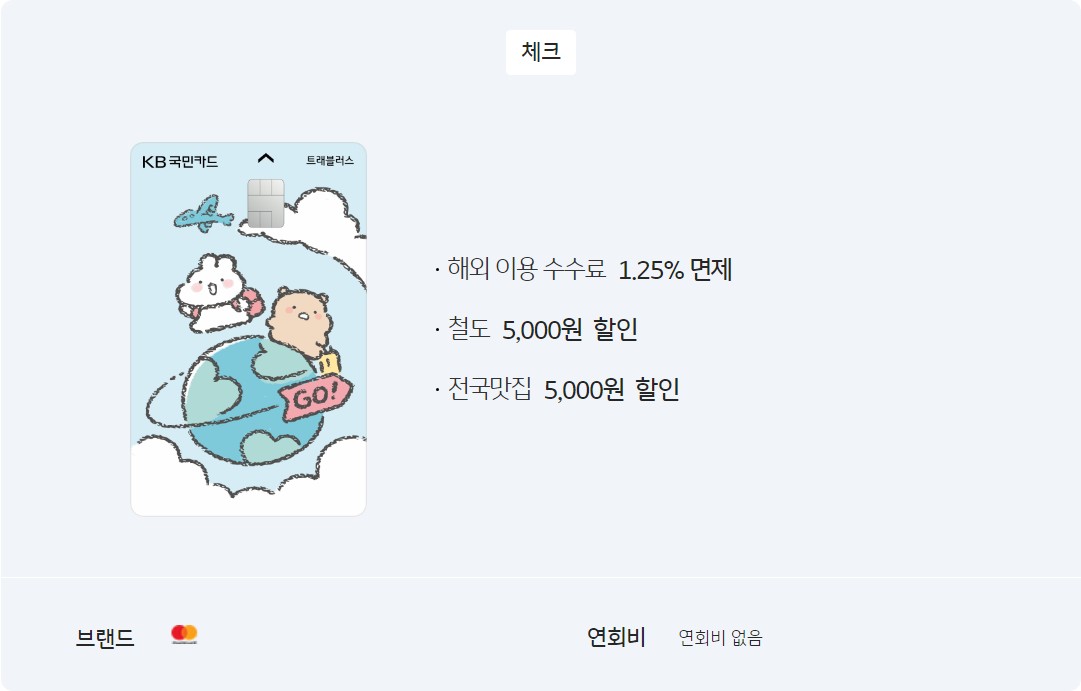 KB국민카드 트래블러스 체크카드 혜택 총정리