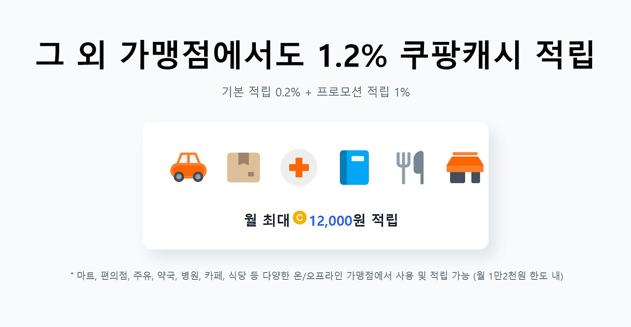 쿠팡와우카드는 쿠팡에서 구매 시 높은 캐시백 혜택을 제공합니다. 쿠팡, 쿠팡이츠, 쿠팡플레이에서 결제 시 4%의 쿠팡캐시 적립 혜택을 받을 수 있으며, 국내외 다양한 가맹점에서도 0.2%의 쿠팡캐시가 적립됩니다. 단, 이 혜택은 월 최대 12,000원까지 가능합니다.