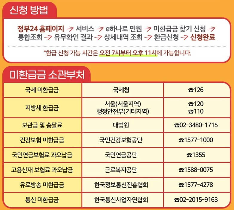 미환급금 종류 중 조회만 가능하고 해당 서비스로 환급 신청이 불가능한 항목은 소관 부처로 문의하여 개별 신청